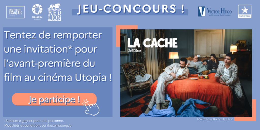 Avant sa sortie au Luxembourg le 4 février 2026, l’Institut français du Luxembourg, en partenariat avec Tarantula Distribution et Red Lion, avec le soutien de l’Association Victor Hugo, propose une avant-première exclusive du film La Cache de Lionel Baier.